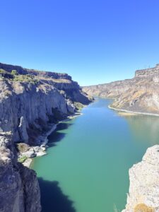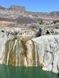 With full stomachs we continued to Shoshone Falls, often called the “Niagara Falls of Idaho.” Unfortunately, there wasn’t much water during our visit, so we didn’t get that massive wow effect. That said, we still enjoyed the stop. The only “problem” was that we had seen photos online from times when the waterfall is roaring with water, so we couldn’t help comparing.