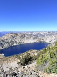 We stayed on the summit for about 20 minutes, but eventually it was time to head back down. By that point the heat was already building, and we couldn’t stop thinking about jumping into Sawtooth Lake on the way down. We expected the water to be freezing cold, but at that moment it sounded absolutely perfect.