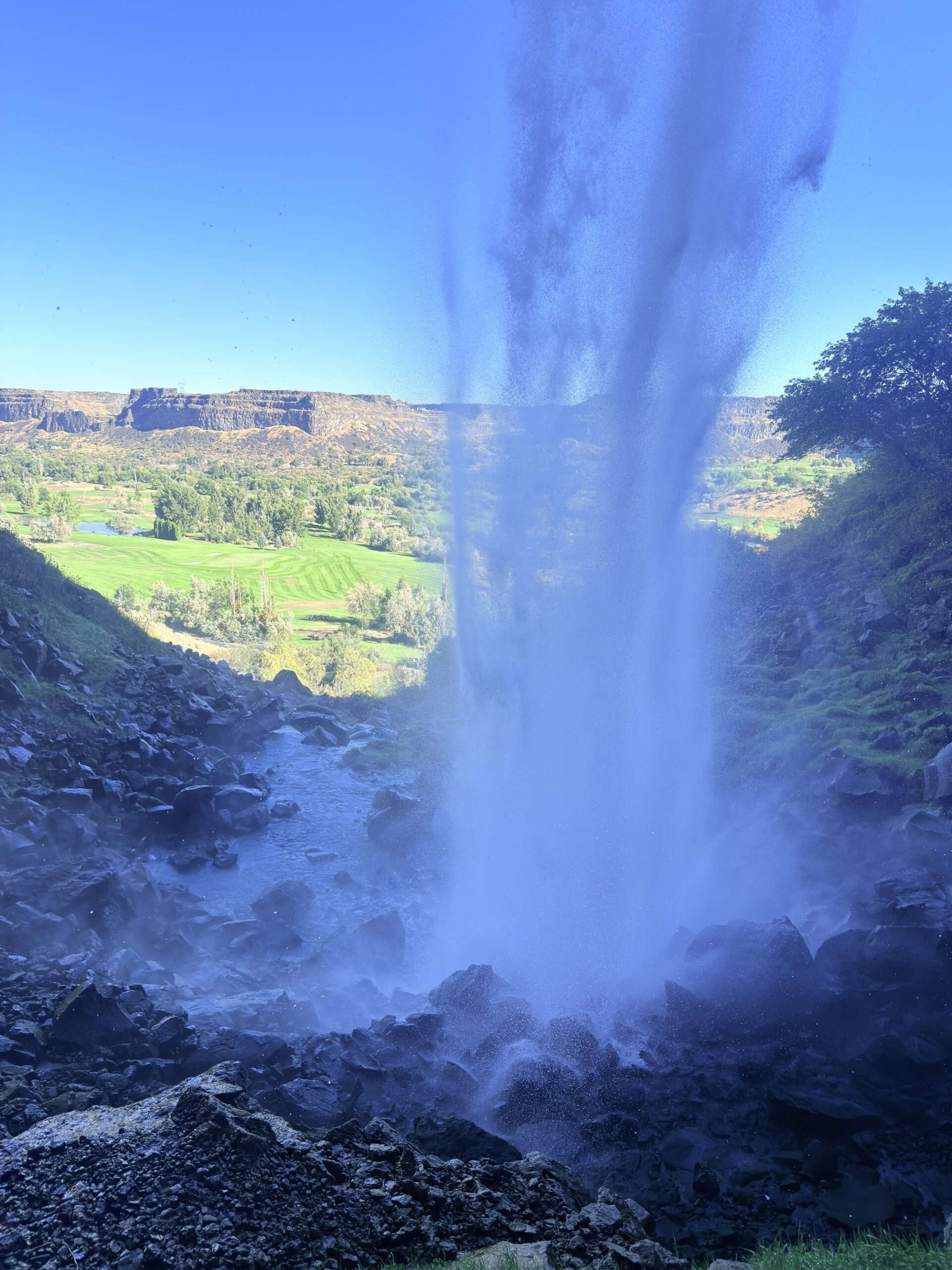 This stop pleasantly surprised us again. It’s one of those places where you only walk a few hundred meters from the road and suddenly you’re standing in front of a beautiful waterfall. From there you also get great views of the impressive Perrine Bridge, which we had driven across just a few minutes earlier. Just like at several other waterfalls in the area, you can also walk behind the falling water and see the cascade from a completely different angle.